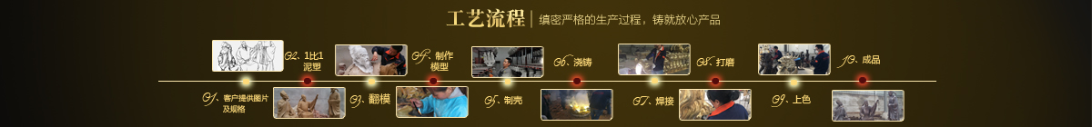 制作一件完美的鑄銅雕塑,最重要的步驟就是制作泥塑模型,然后再用工業(yè)硅膠拓印、翻模。所以泥塑的姿態(tài)、神情生動與否直接影響最終銅雕塑的品質(zhì)。所以我廠一直對泥塑模型的制作格外重視。我廠以雕塑為本,以藝術(shù)為根,挾中華文化之傳統(tǒng),偕歐陸藝術(shù)之風(fēng)韻,風(fēng)格獨特,盡顯淋漓盡致。我們本著大膽創(chuàng)新、勇于突破的精神,以追求卓越為導(dǎo)向,堅持寧缺勿濫為原則,并可依照您提供的要求,為您量身設(shè)計制作。我廠人才濟濟,有智慧嚴謹?shù)墓芾戆嘧?,眾多年輕充滿激情、充滿創(chuàng)意的專業(yè)設(shè)計團隊、有專業(yè)技術(shù)精湛的雕塑制作人才和專業(yè)的施工隊伍。他們不僅具深厚的文化藝術(shù)底蘊,更汲取當代雕塑精華,博采眾家之長,作品既有嚴肅莊重寫實題材,也有輕松前衛(wèi)的抽象題材,表現(xiàn)手法上浪漫主義中不乏樸實,現(xiàn)實主義中蘊涵著激情,設(shè)計理念貫穿古今、融匯中西,深刻詮釋著藝術(shù)的精髓,把古典主義和后現(xiàn)代主義完美的融合,將雕塑藝術(shù)演繹為力的凝聚、美的體現(xiàn),讓人們感受到的不僅是一種藝術(shù)的浪漫與優(yōu)雅、粗獷與悲壯、更是豐富的優(yōu)秀藝術(shù)寶藏和文化傳統(tǒng),讓您在藝術(shù)與文化中穿流,在時空中飄蕩,使靈魂在藝術(shù)的海洋洗禮。 MORE+